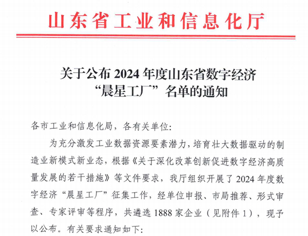 數(shù)字經(jīng)濟(jì)“晨星工廠”是山東省為推動數(shù)字經(jīng)濟(jì)發(fā)展而設(shè)立的重要榮譽,旨在表彰創(chuàng)新能力突出、典型示范性強、應(yīng)用成效明顯、經(jīng)濟(jì)效益顯著的數(shù)字驅(qū)動型數(shù)字經(jīng)濟(jì)企業(yè),為不同行業(yè)、不同領(lǐng)域、不同發(fā)展階段的工廠提供智能化轉(zhuǎn)型升級的“參照物”,以加快推動山東省工業(yè)企業(yè)在更廣范圍、更深層級開展數(shù)據(jù)采集、傳輸、存算、管理及應(yīng)用工作,促進(jìn)數(shù)字技術(shù)與實體經(jīng)濟(jì)深度融合。